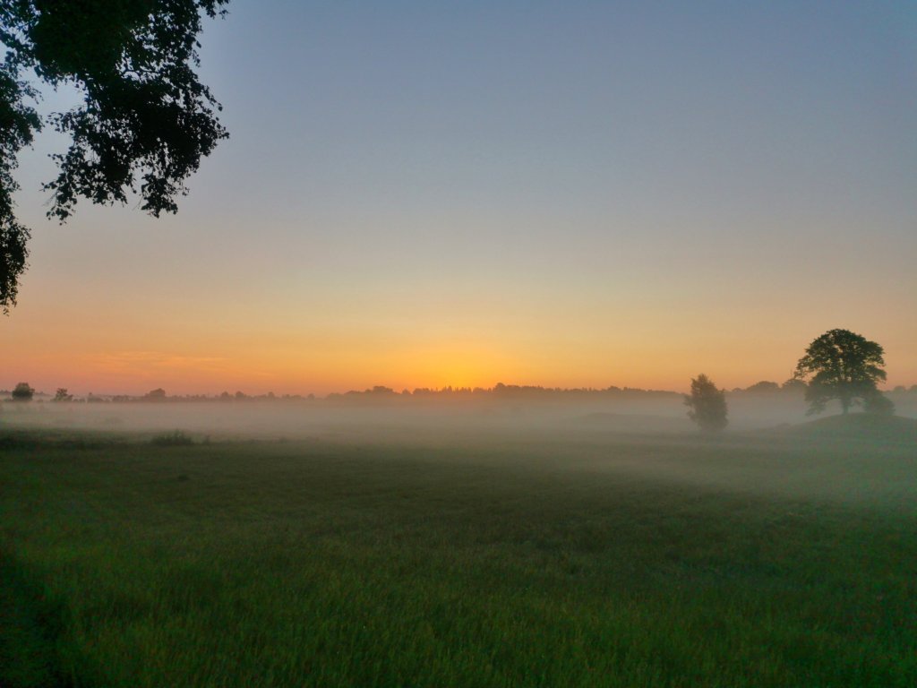 It is a special feeling to walk to the shore while the sun is rising. September can contain both days of Autumn and of Summer, much depending on from where the wind is blowing. This week a southerner started blowing and brought with it warmth from the south of Europe. The haze, which comes of the warm days and cold nights, creates a mysterious light and warm colours in the hills and valleys.