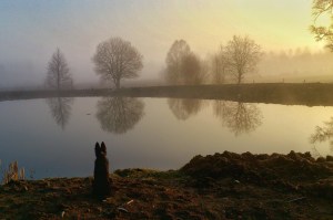 It was more than seven years ago. I got up before the others in the house. It was the month of April, thus nature was not in her complete spring colours, but the mornings were bright, full of smells and sounds. Toby was just some months old and as all puppies, an early bird. This particular morning we took a stroll along our little lake. While standing by the edge of the lake, the air together with the rising sun created an almost unreal feeling. Toby was fascinated by the water, but also by the light I think. He sat for a long time just looking at the surface. It was a lovely time which I still would like to return to, the silence, the light, the warm air.