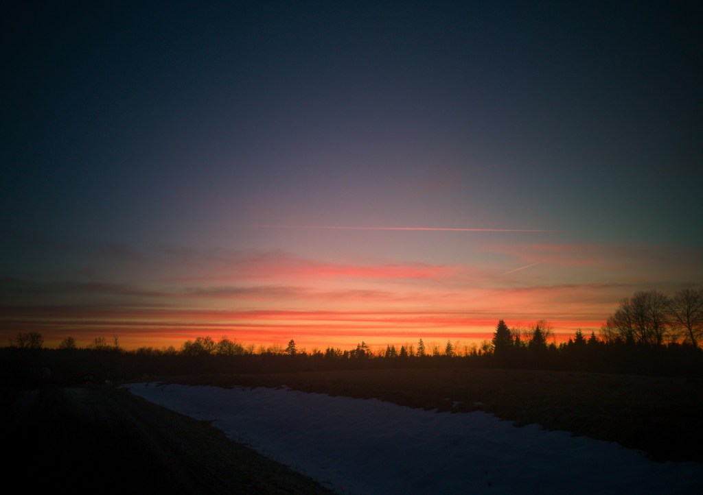 Spring is truly here, the cranes have arrived, the starling in his shimmering plumage sings as he flaps his wings in excitement. He excels in imitating other birds. Often he sits on the ridge of the wood shed with a clear view of his nest and the lake. The day grows longer than the night now. Life is back. To run during sunset these days have been a true enjoyment.