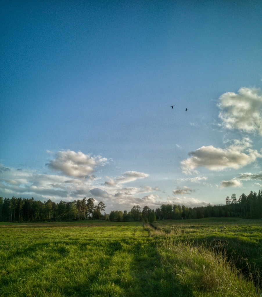 There are days when after a lot of visitors you need to get out in an open field and be in solitude. It was a windy day, but the stormy weather created a peaceful silence within me, as if the wind took over my thoughts and brought them to a restful place. During our walk, two cranes passed in front of us, calling as they left and landed in the field nearby.