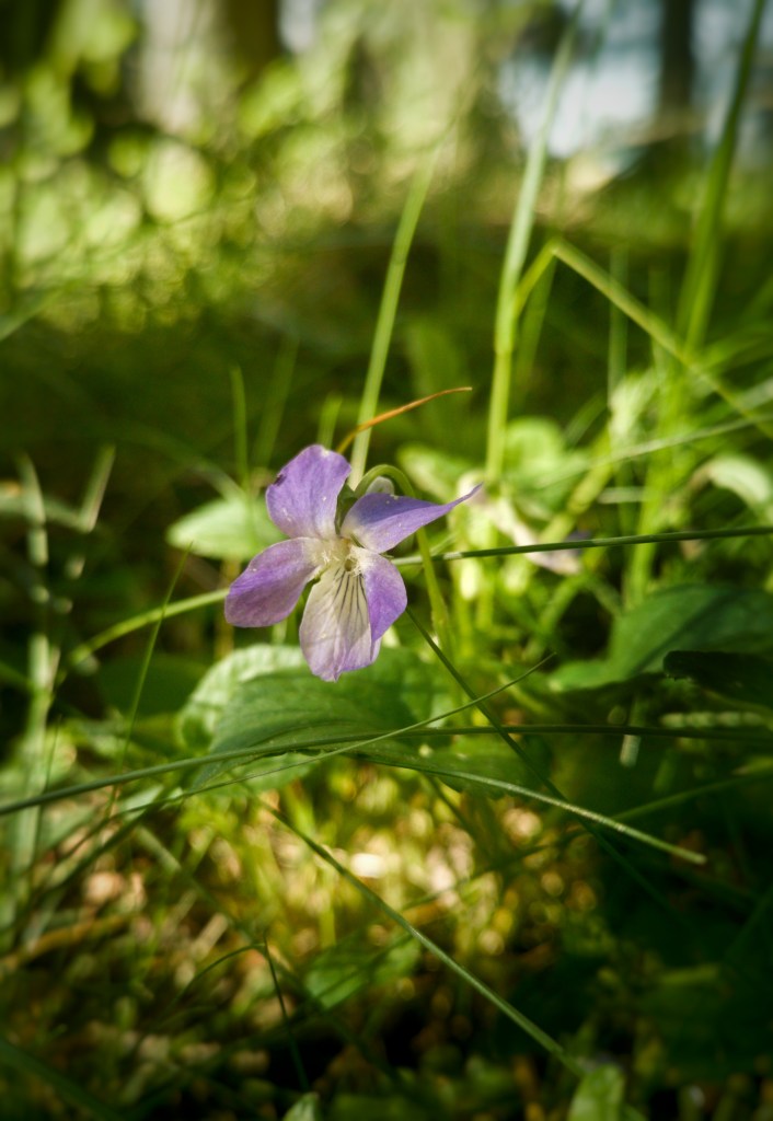 I love the colour of this violet. It is so small that it’s easy to just pass it. But it makes such a beautiful contrast to the white flowers in the forest, so when I encounter with this violet, I stop for a moment to look at it in all its freshness.