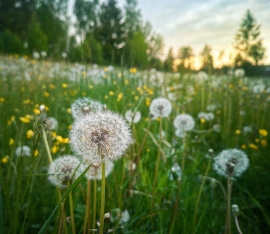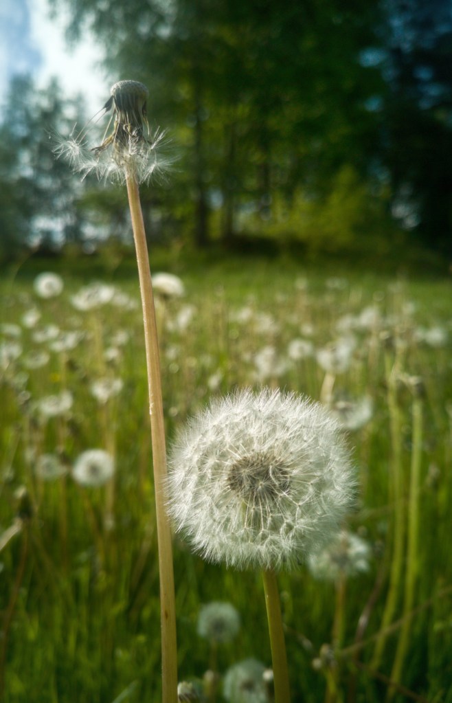 I love to walk in the evenings among the dandelions. I was told as a child that if you managed to blow away all the seeds in one try, you could wish for something. I still take up one of them once in a awhile and with some excitement blow at it. The wish? To see the beautiful seeds dancing in the air.