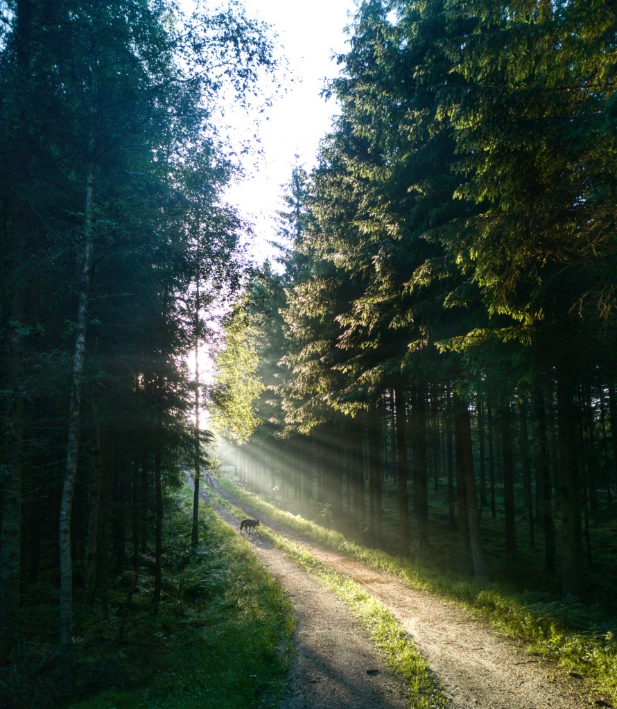 And it is true, especially in summer, the mornings are golden, the air is fresh, the soft silence gives room for the sounds of the forest. There we are Toby and I in midst of it all.