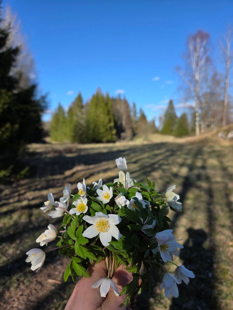 The Wood anemone is a hardy flower and a flower that expresses the atmosphere of spring in all it’s expressions, the colours of yellow and white that turns into lilac, and the faint scent of sweet citrus. I couldn’t resist picking a bouquet of them, bringing them home to cheer up and beautifying our little home.