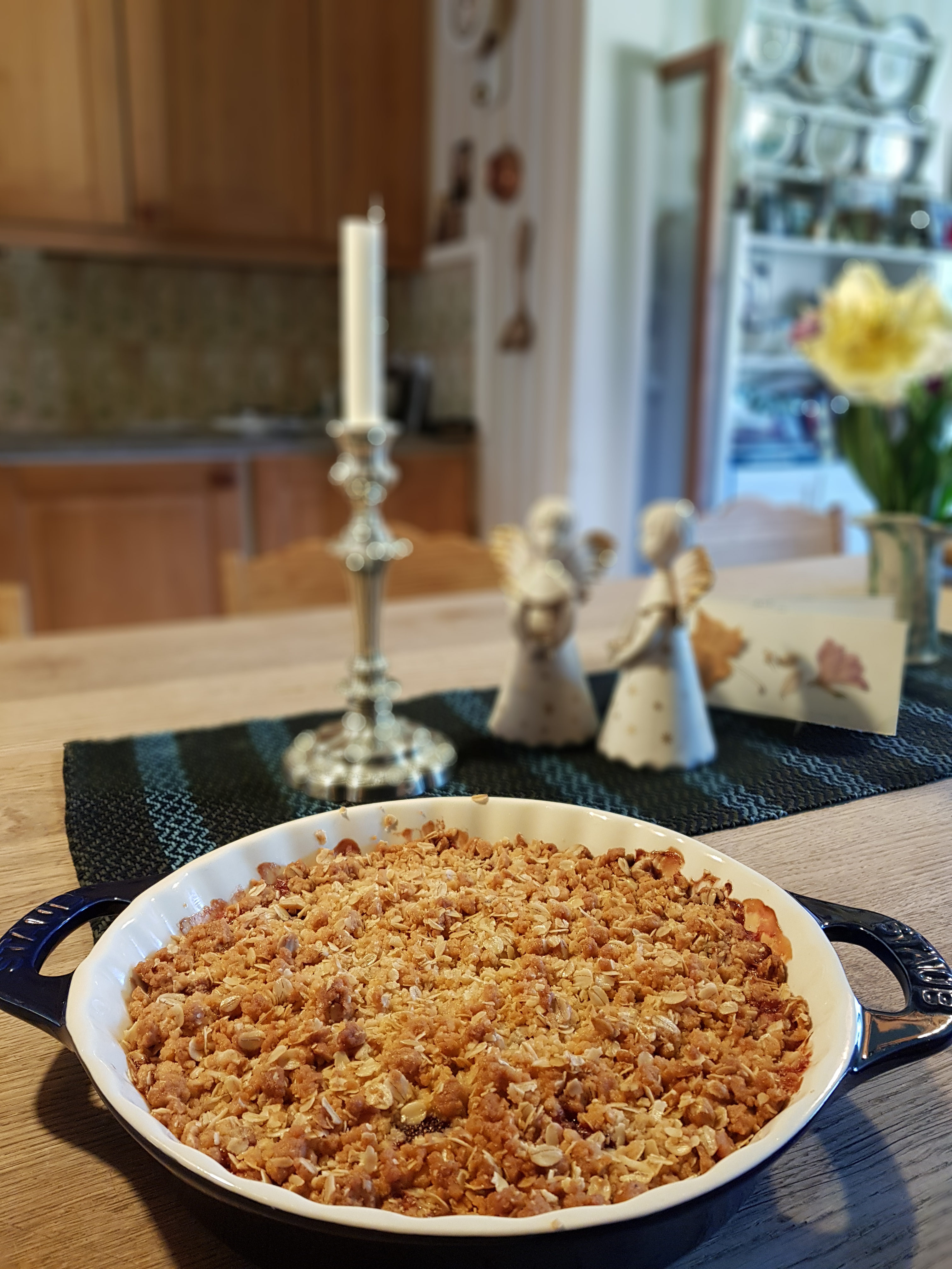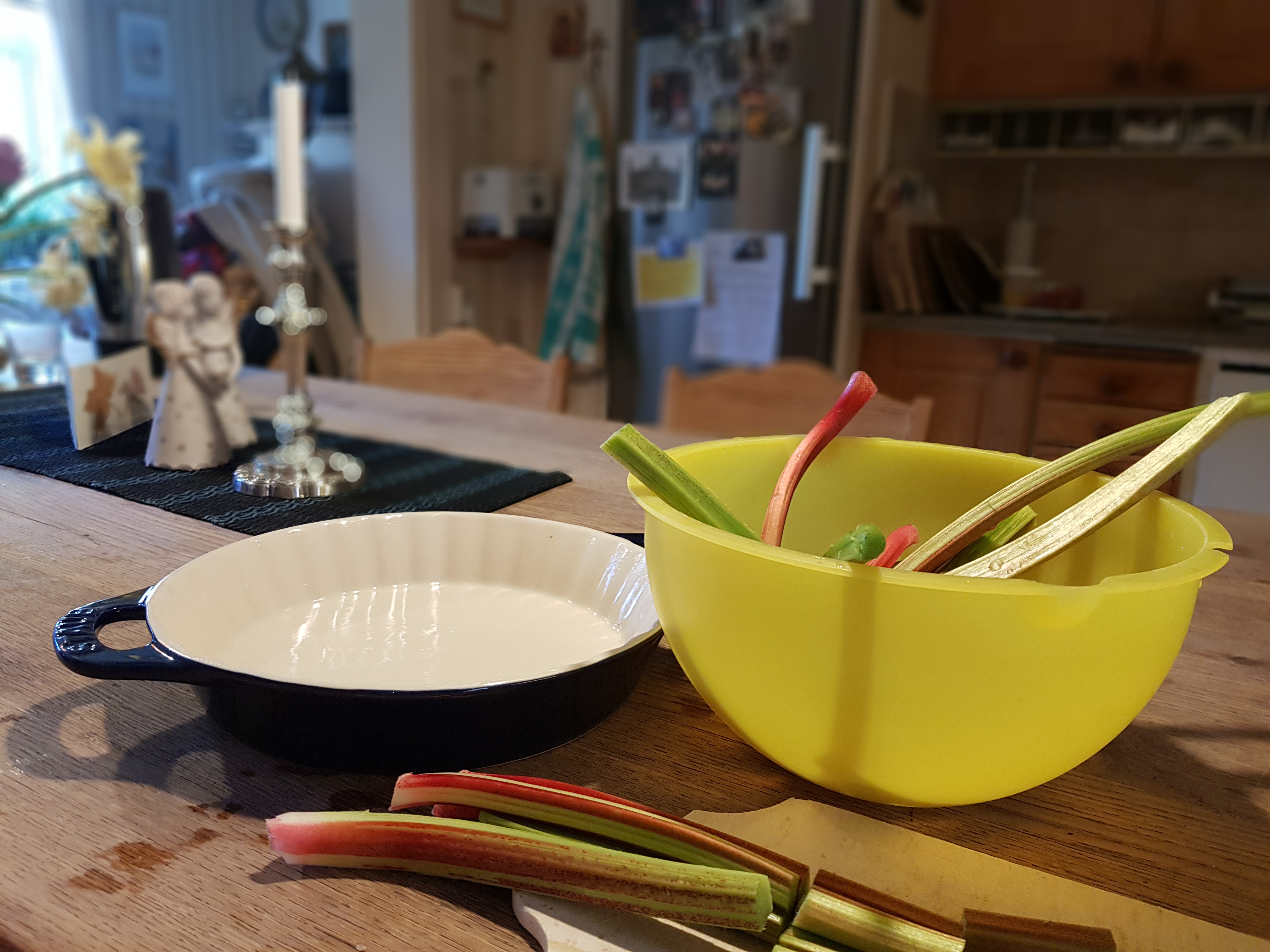 But then I decided to make a rhubarb pie the next morning to have after lunch the same day. It is such a privilege to step out in the garden with just birdsong around me, pick some rhubarb stalks and then in peace make a pie for just us two.
