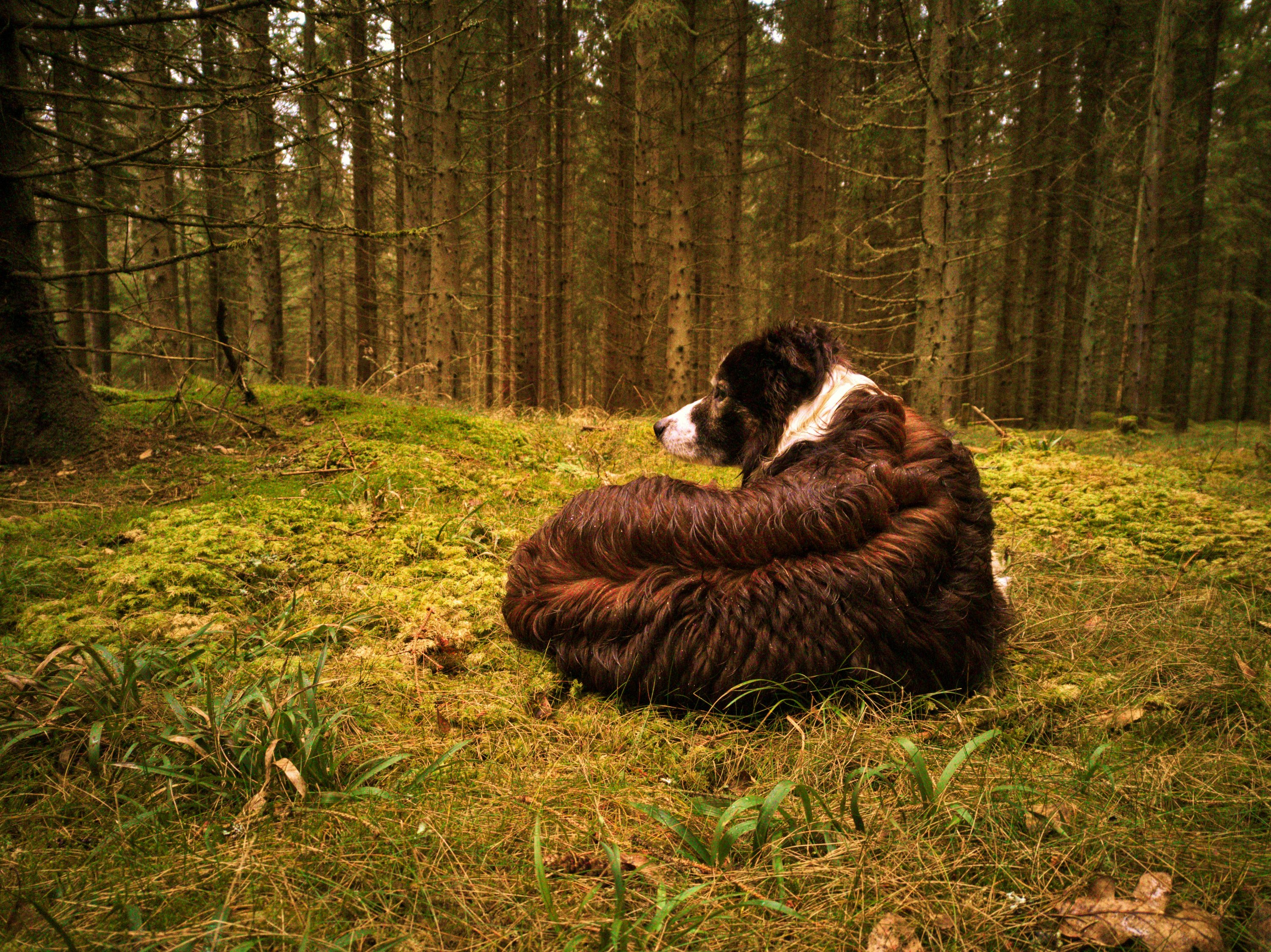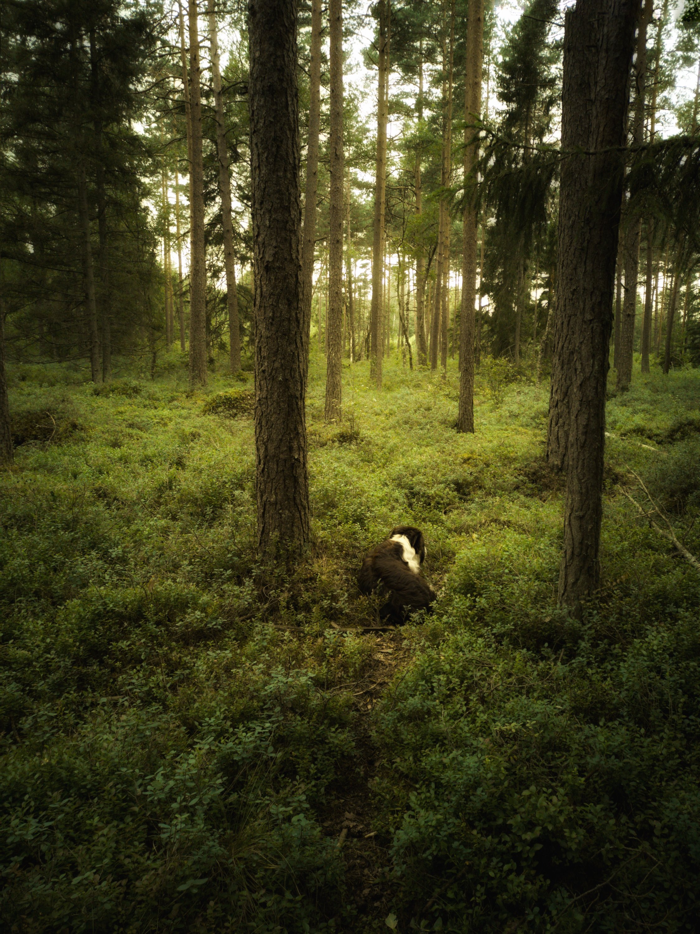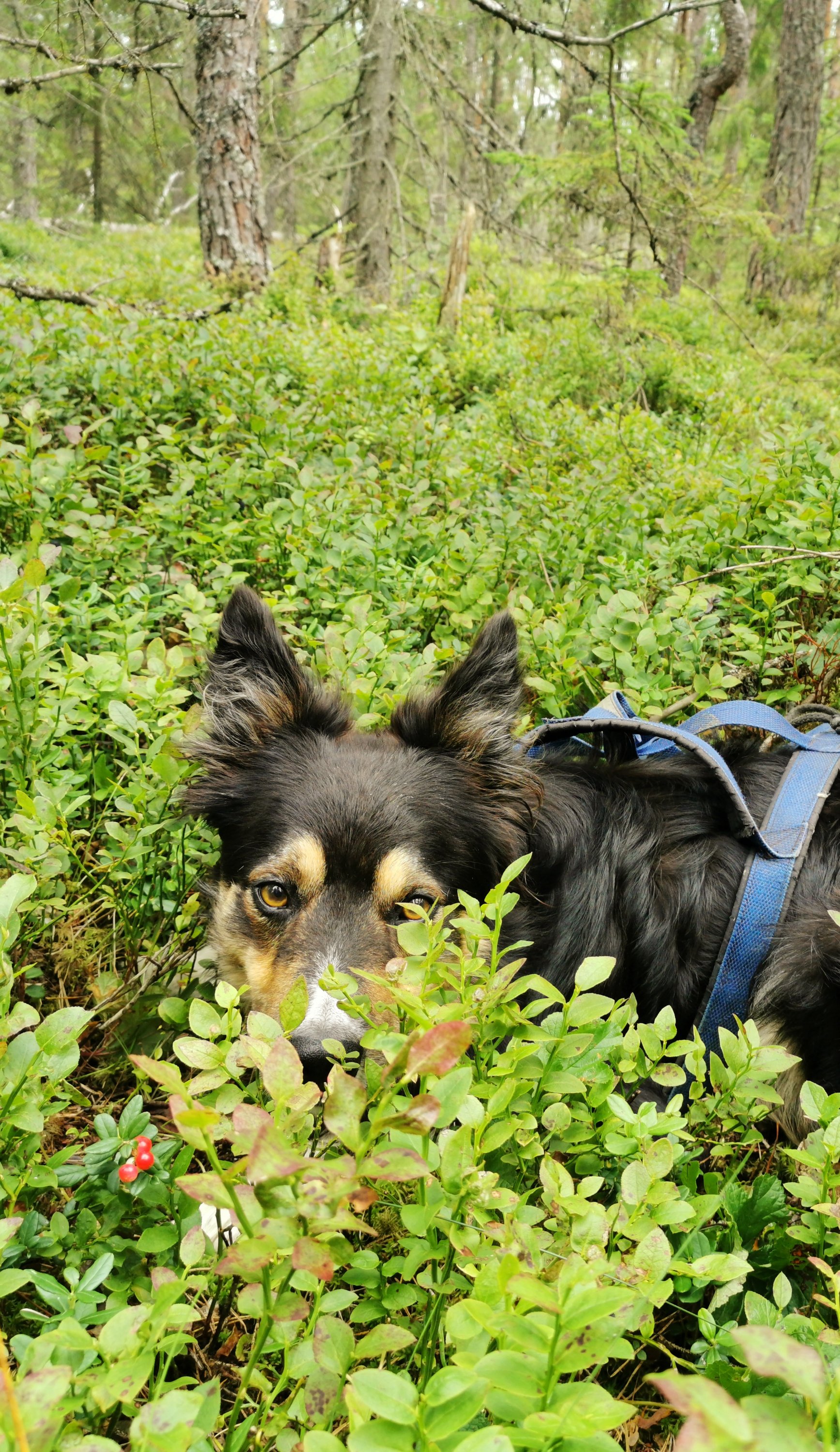 My dogs too get in another mood when I start picking berries. From being running with the bicycle in a brisk mood, they settle down, sniff a little, make a comfortable sleeping place in the sprigs and not just sleep, but rest in a way that shows how well suited they are amidst the natural beauty.