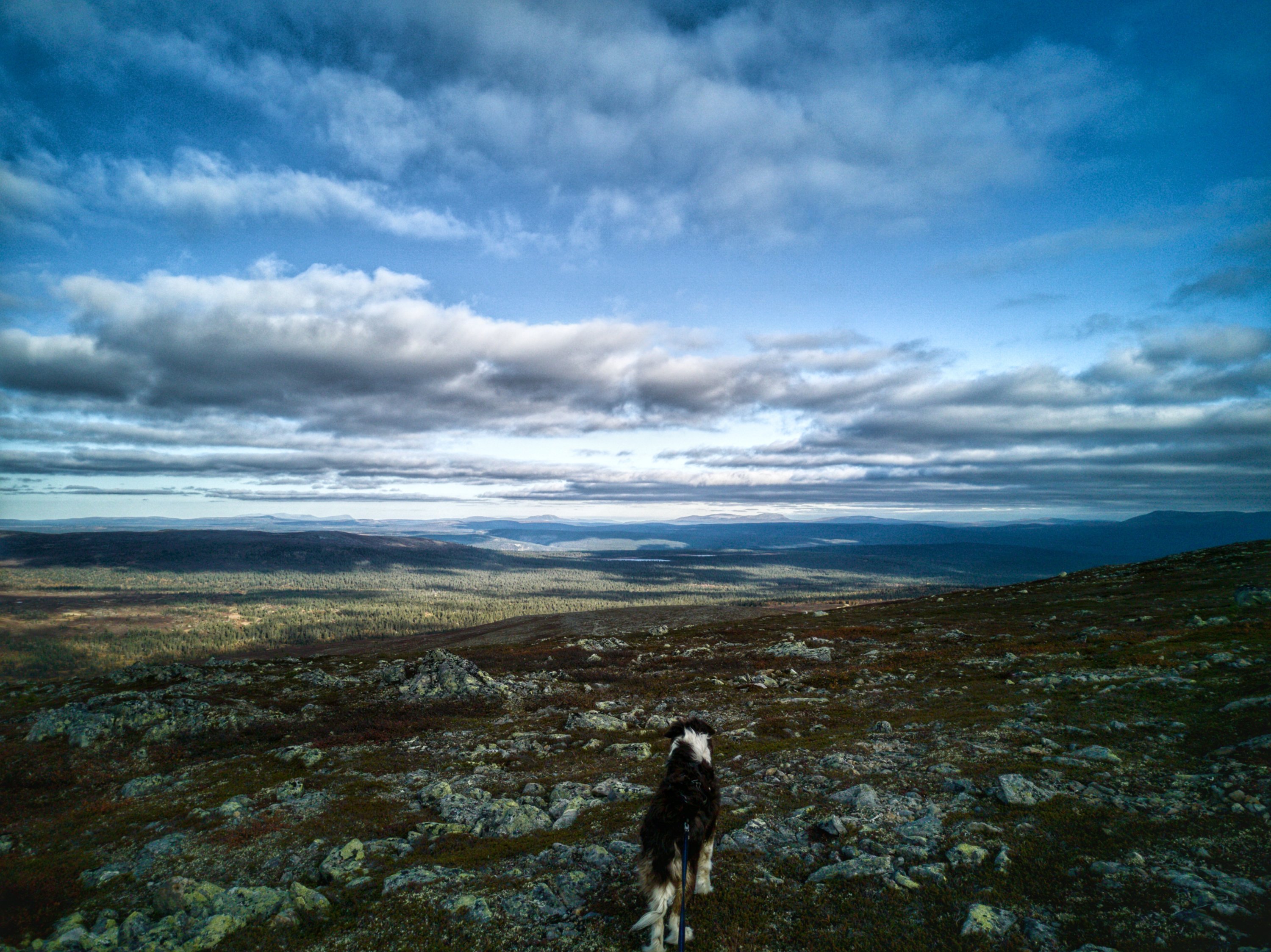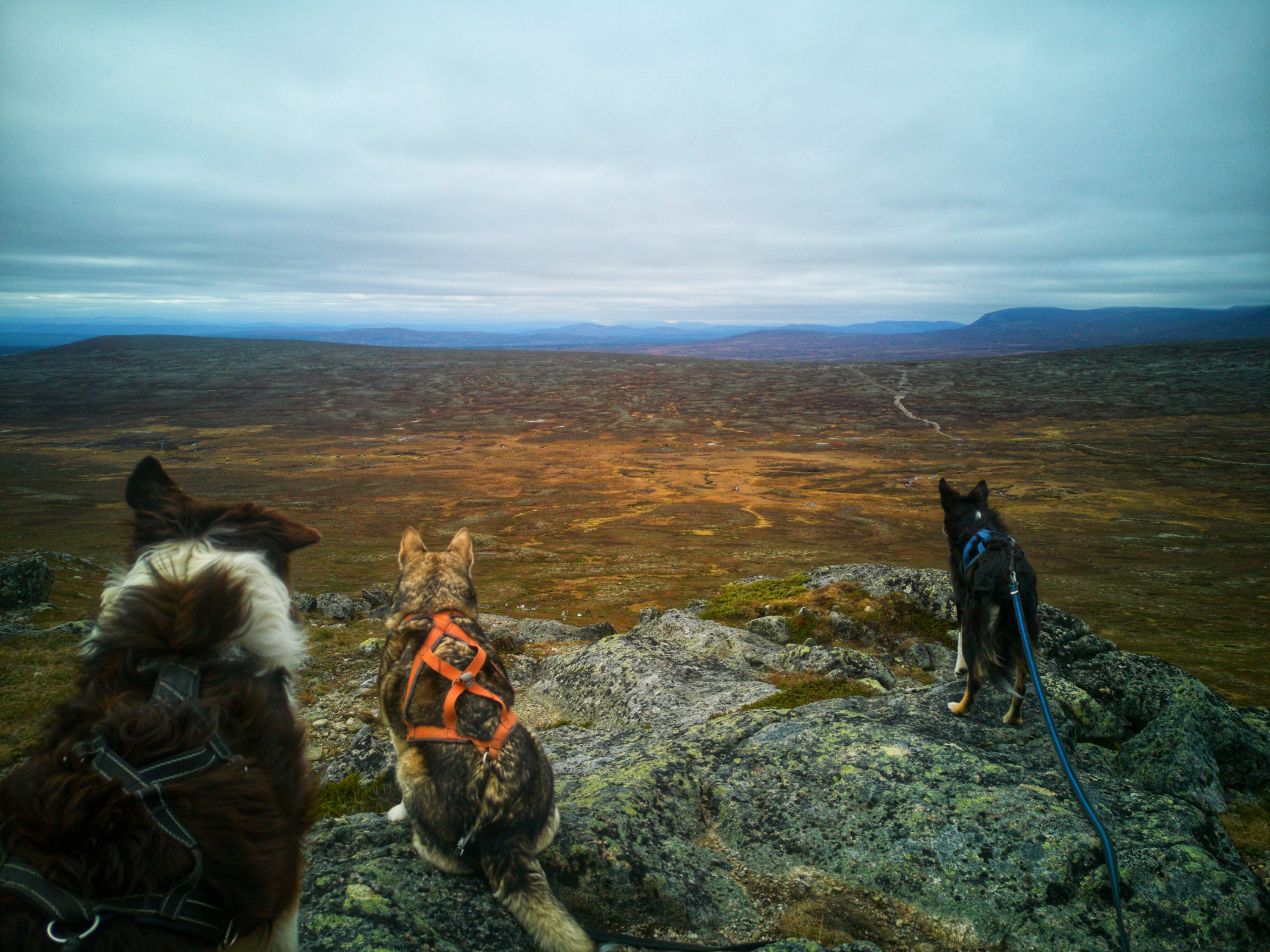 My sister and I decided to go out trekking in Norway during August. Just some days before our departure there was an outbreak of a deadly illness affecting dogs of all kinds in entire Norway. After we had waited for two weeks we decided that it was better to be safe than sorry and go to the North of Sweden in a beautiful natural reserve called Grövelsjön. It is a fjeld around a narrow lake which stretches on the Swedish Norwegian border. To the east the low fjeld stretches seemingly for ever.